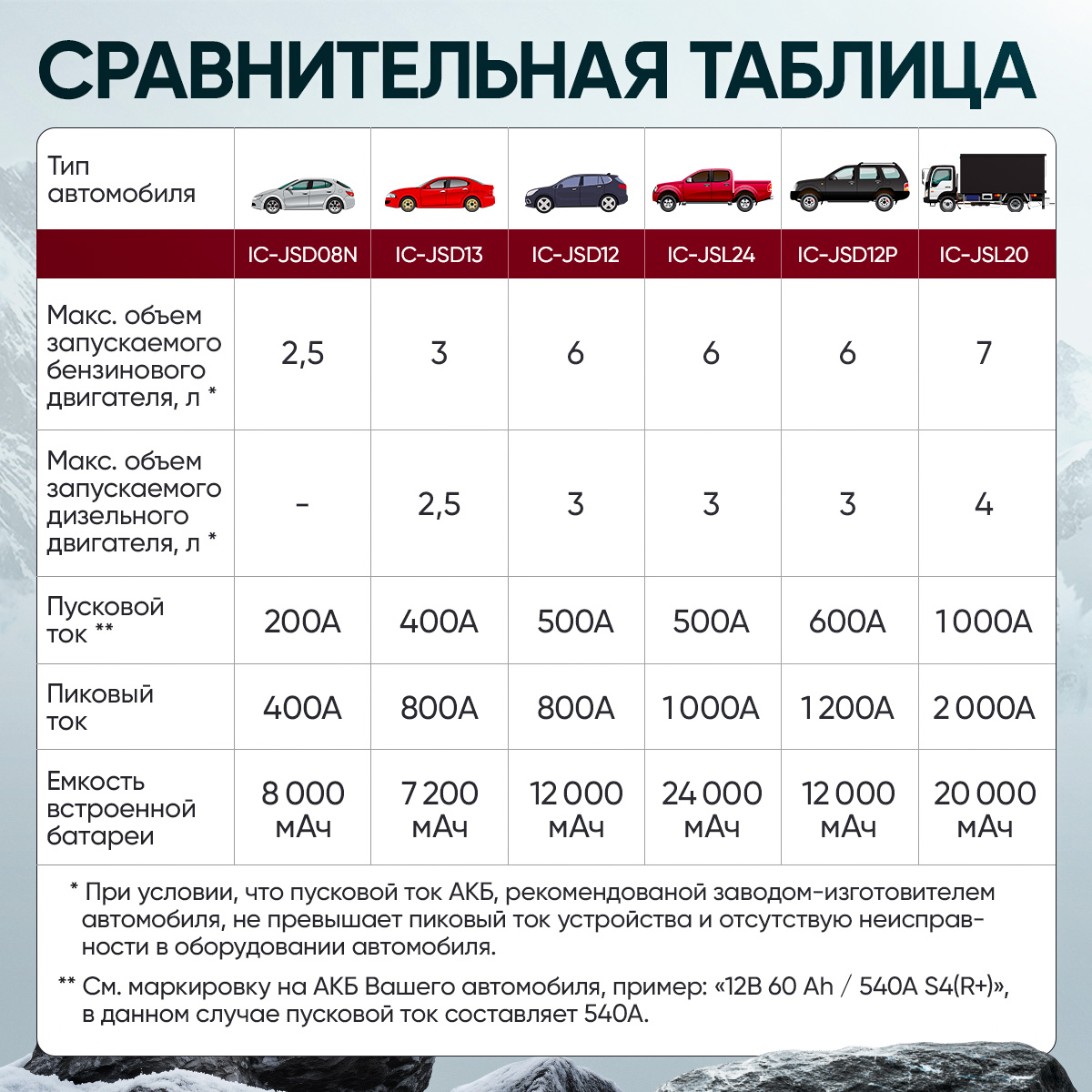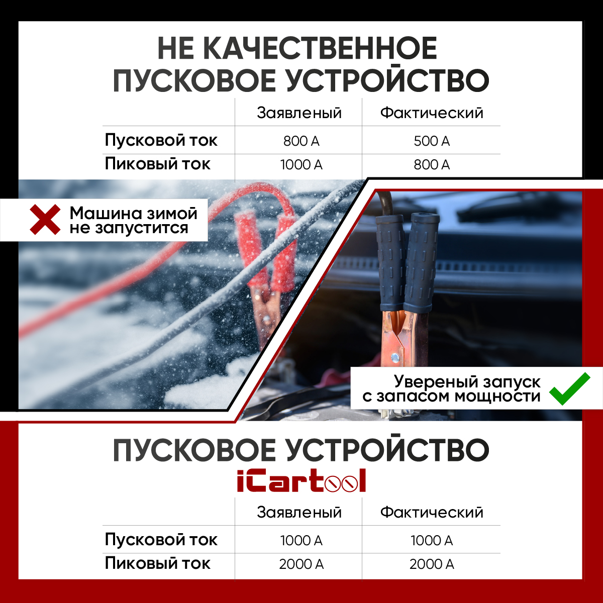 Запуск двигателя: если двигатель не запускается или вы хотите облегчить процесс запуска при сильном морозе, просто подключите устройство к АКБ и заводите автомобиль!