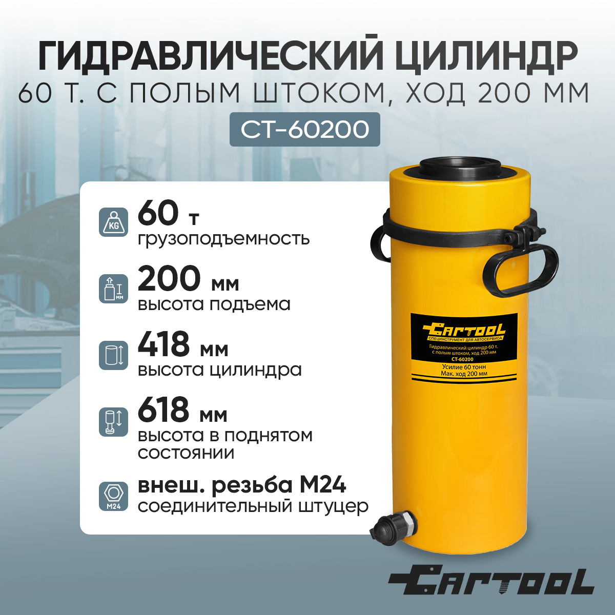 Гидравлический цилиндр 60 т с полым штоком, ход 200 мм Car-Tool CT-60200