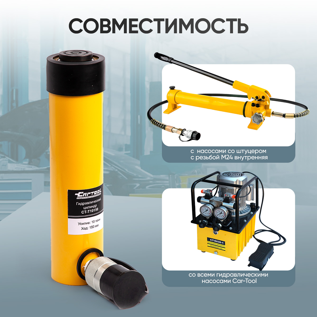 Гидравлический цилиндр 10 т, ход штока 150 мм Car-Tool CT-T10150