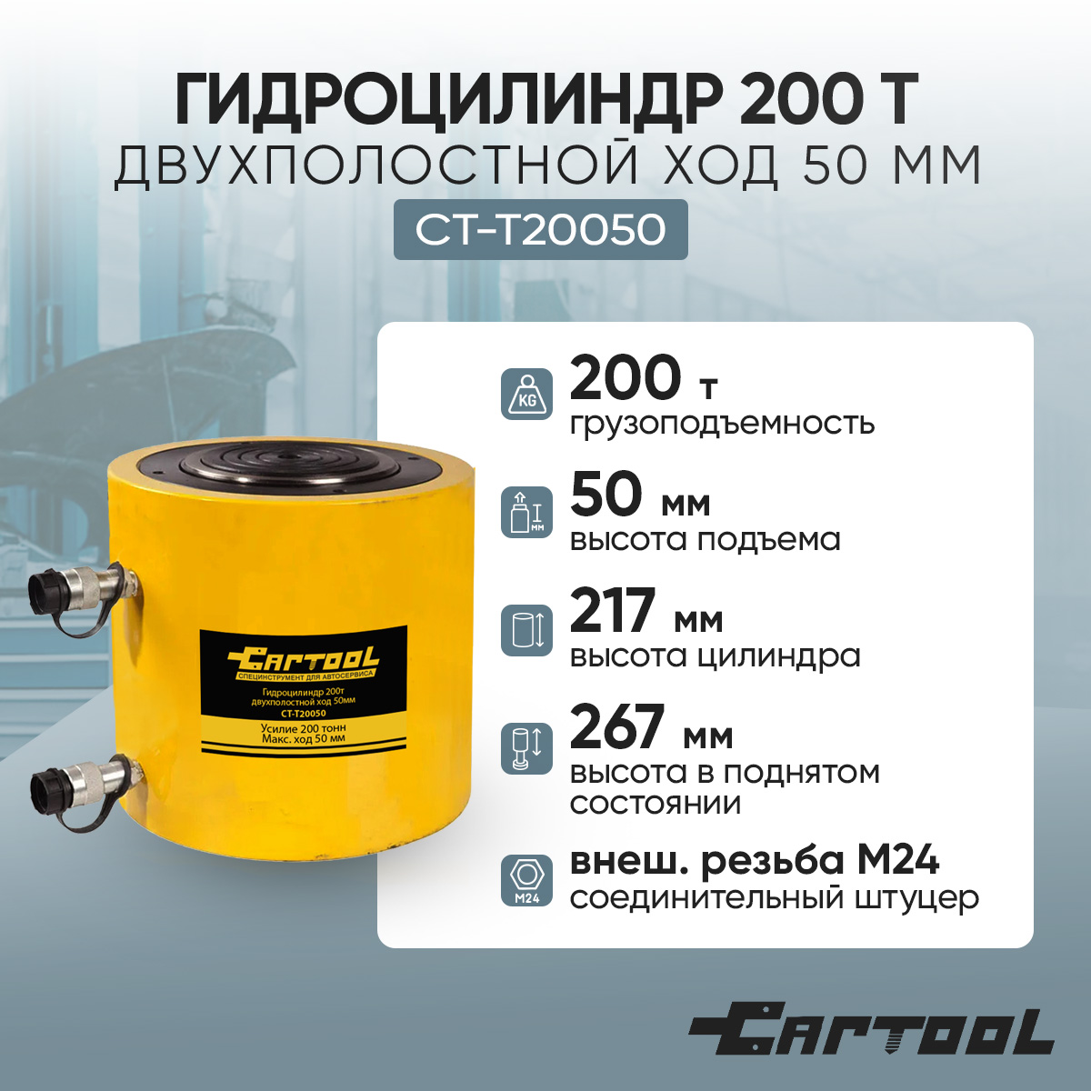 Гидроцилиндр 200 т двухполостной, ход 50 мм, Car-Tool CT-T20050
