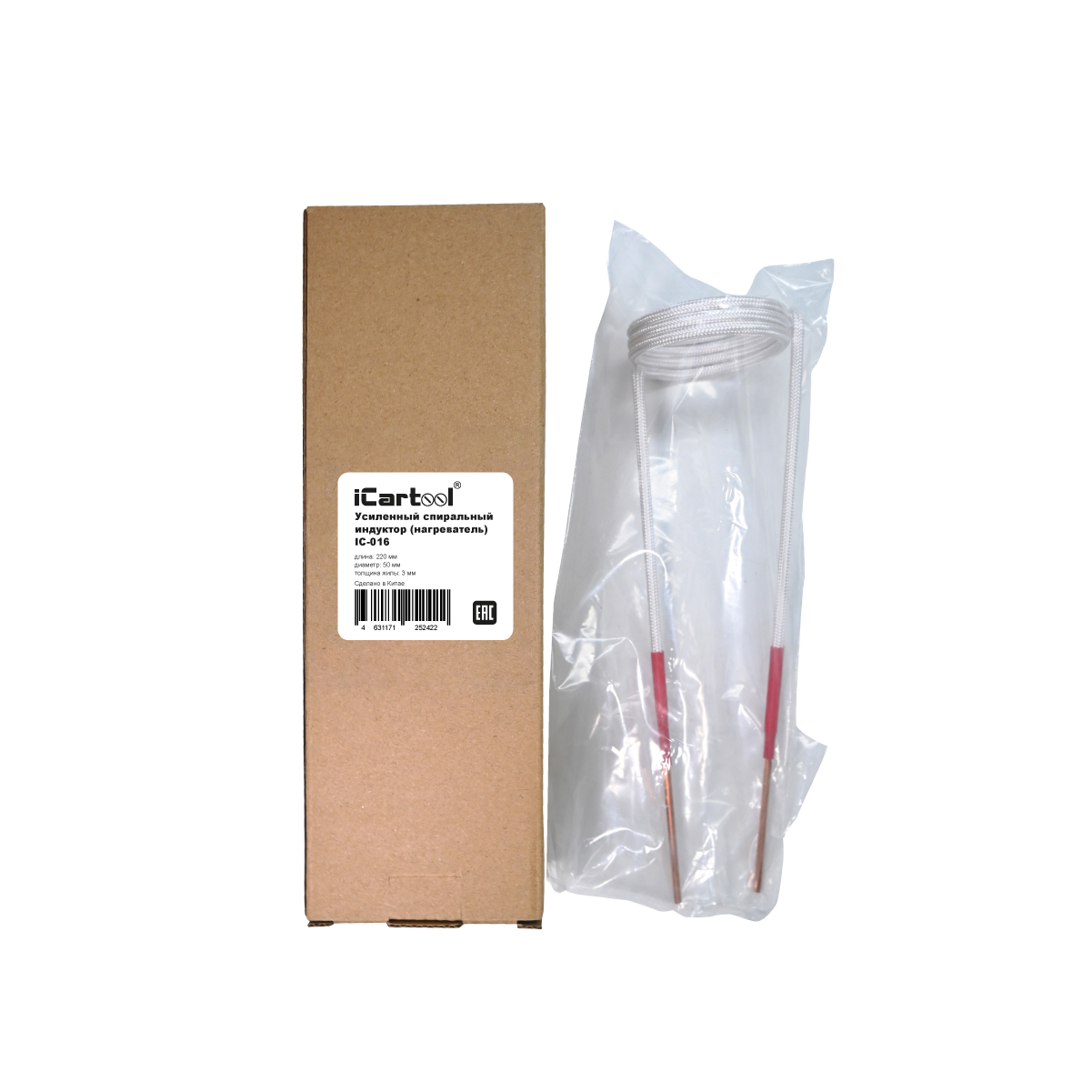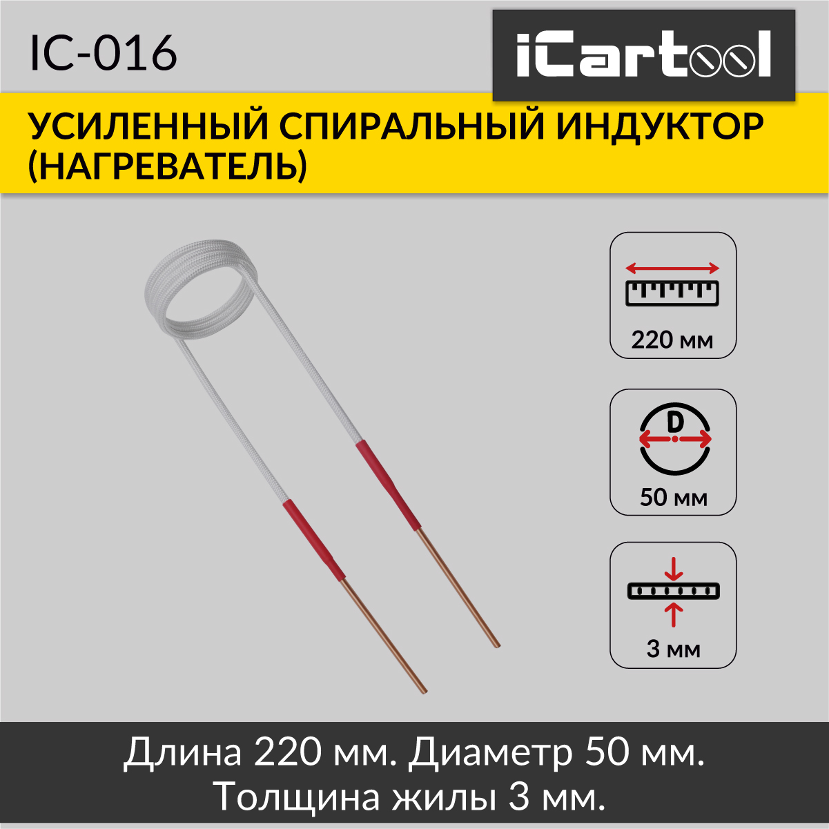 Усиленный спиральный индуктор (нагреватель) длина 220 мм. диаметр 50 мм. толщина жилы 3 мм. iCartool IC-016
