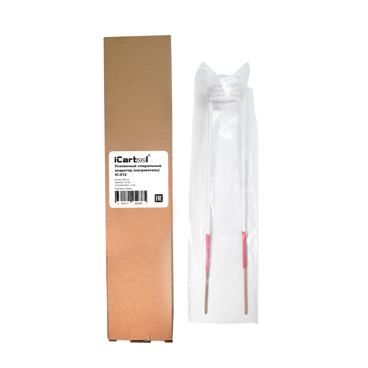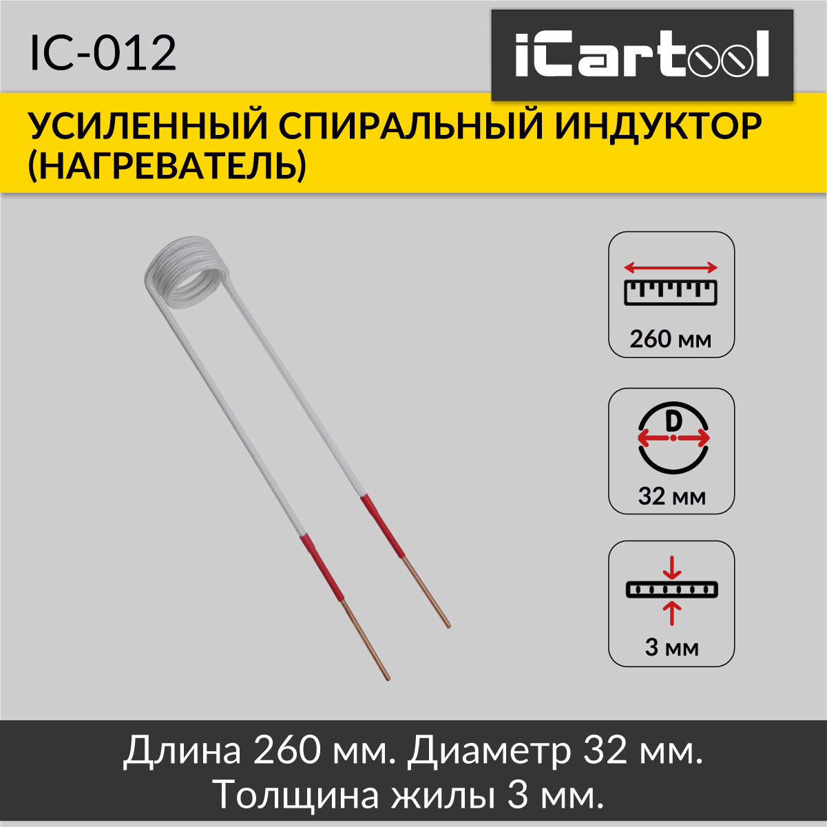 Усиленный спиральный индуктор (нагреватель) длина 260 мм. диаметр 32 мм. толщина жилы 3 мм. iCartool IC-012