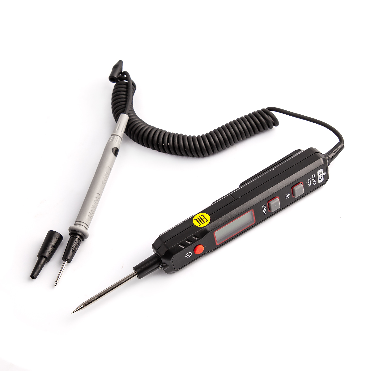 Тестер выполнен из ударопрочного ABS-пластика, имеет жк-дисплей с подсветкой, фонарик, металлический щуп и спиральный провод с выносным щупом.