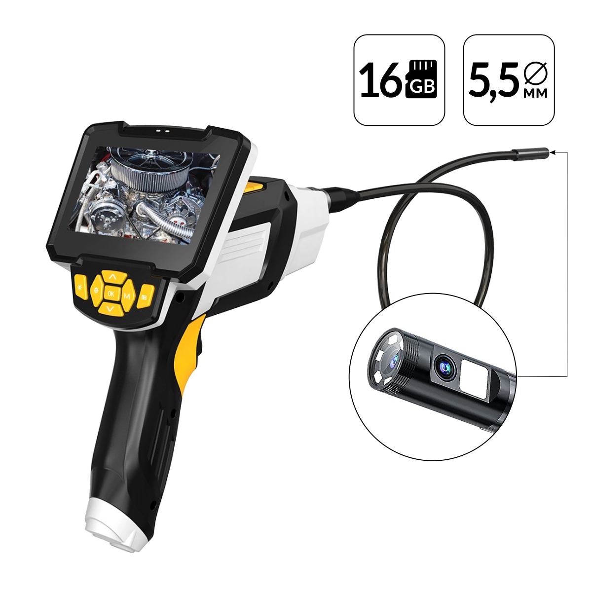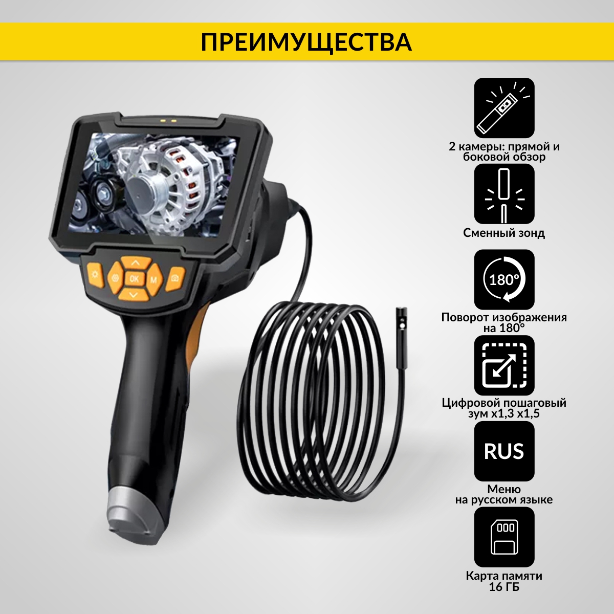 Видеоэндоскоп промышленный с 2 камерами, 4.3", 2Мп, 1м, 5.5 мм карта 16ГБ iCartool IC-V112B