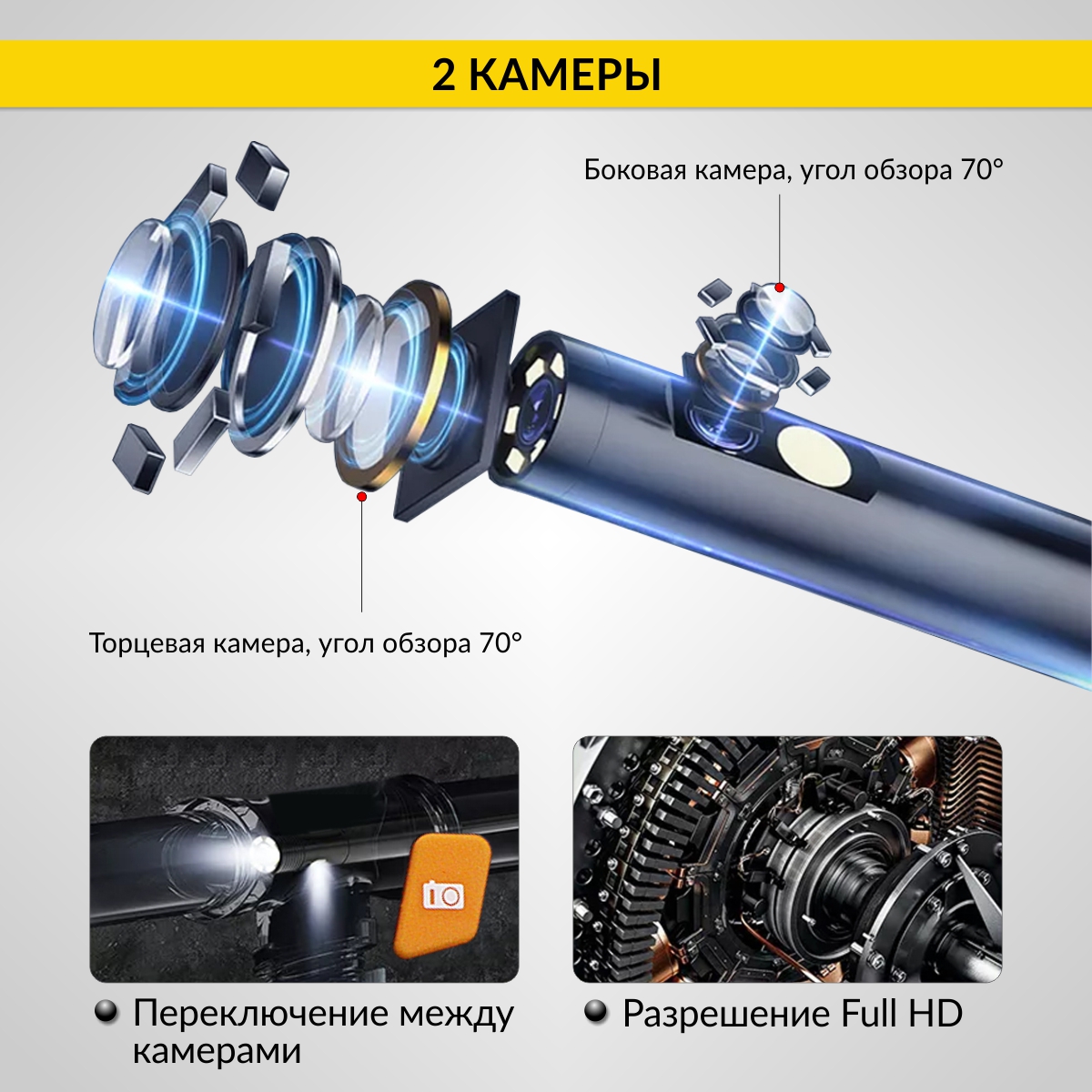 Зонд для видеоэндоскопа iCartool IC-V112A/B/C, 2 камеры, 1м, 5.5 мм iCartool IC-VP112B55-2