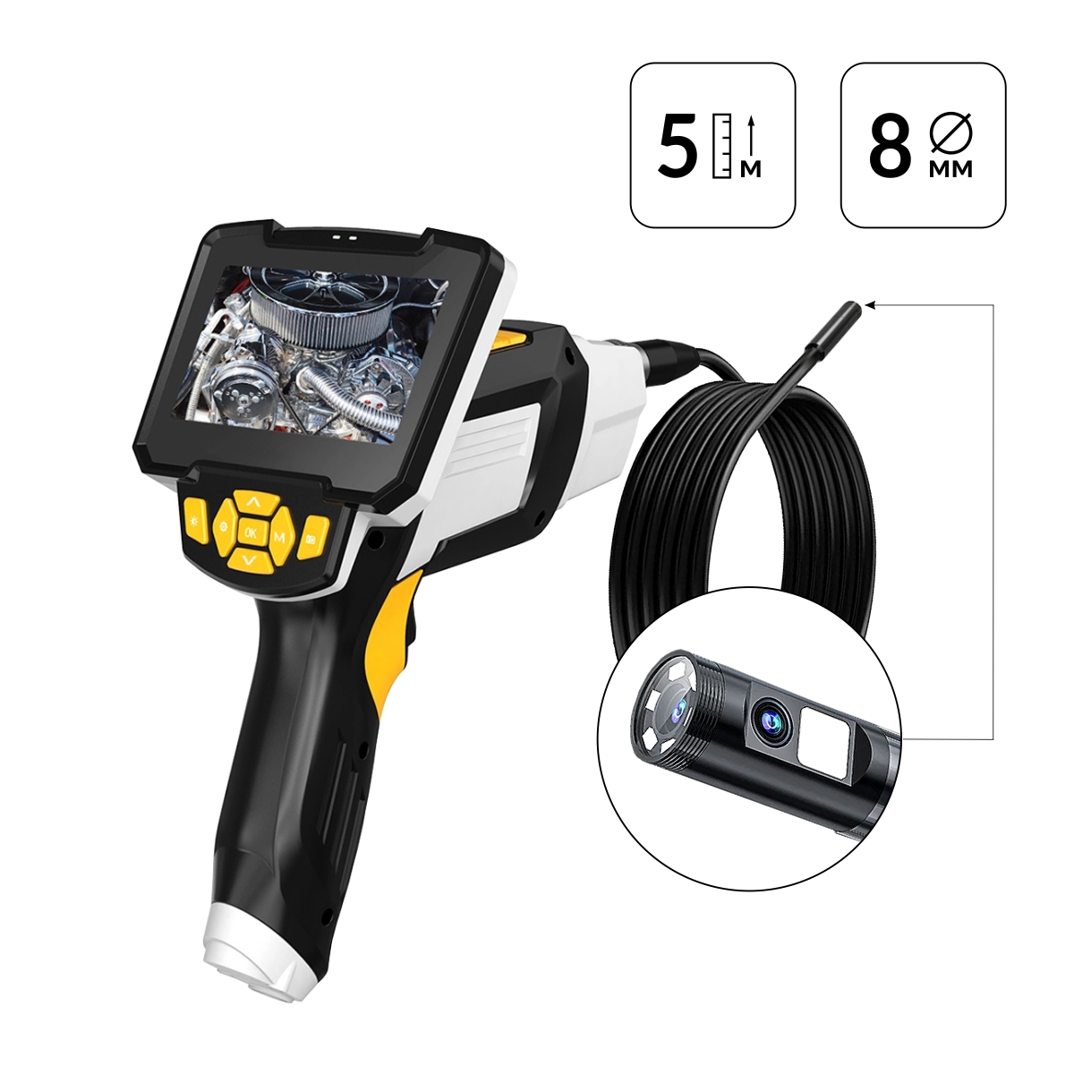 Видеоэндоскоп промышленный, 4.3", 1Мп, 2 камеры, 1280х720, 5м, 8 мм сменный зонд iCartool IC-V112A-5