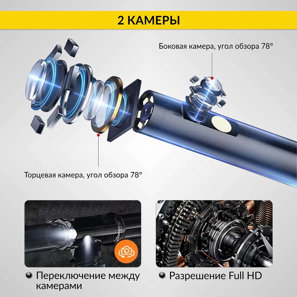 Видеоэндоскоп промышленный с 2 камерами, 4.3", 2Мп, 1м, 5.5 мм карта 16ГБ iCartool IC-V112B