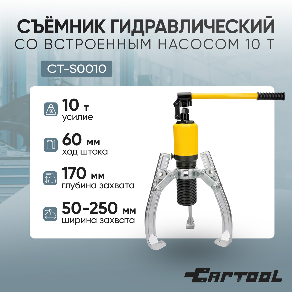 Гидравлический съёмник Car-Tool CT-20700 — это профессиональный выбор для тех, кто ценит надёжность, высокое усилие и удобство в работе.