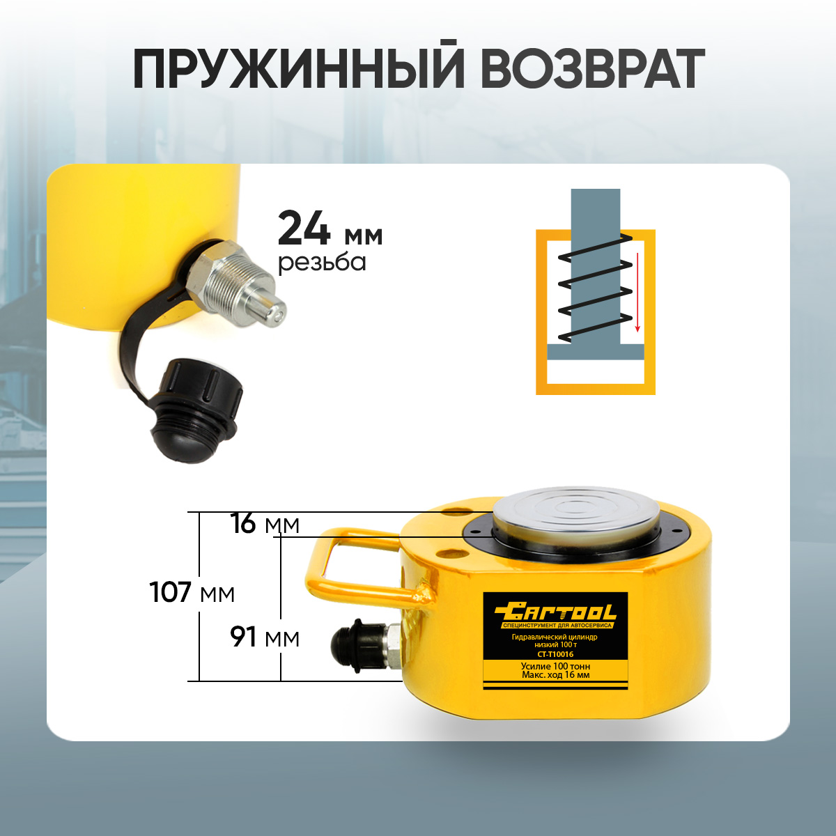 Гидравлический цилиндр низкий 100 т Car-Tool CT-T10016