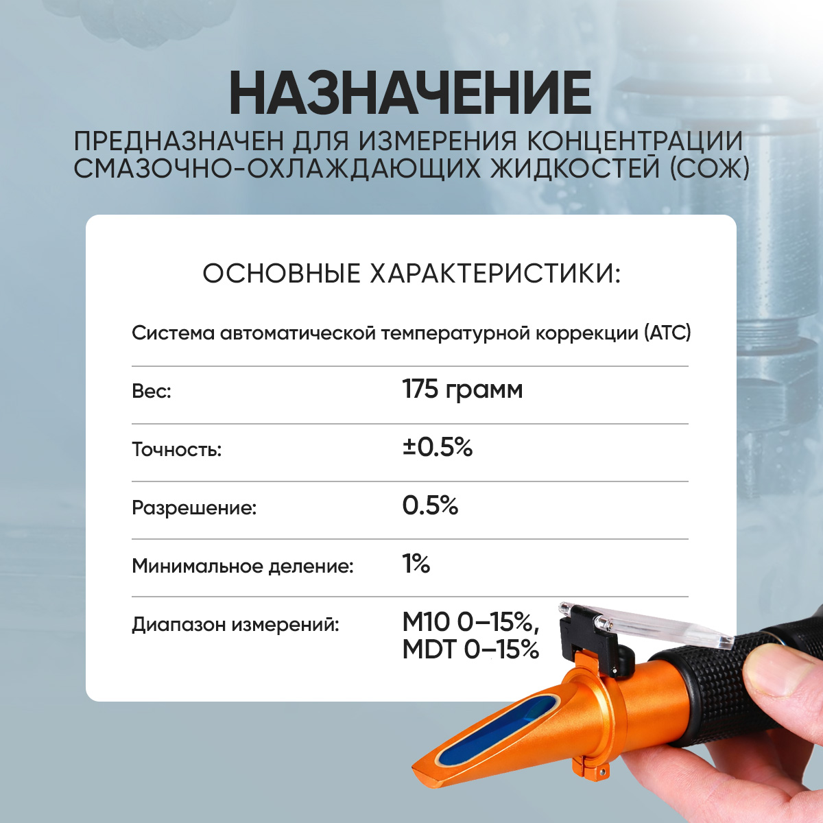 Рефрактометр СОЖ iCartool IC-804 — ручной оптический прибор для контроля концентрации смазочно-охлаждающих жидкостей (водосмешиваемых эмульсий) по принципу преломления света. Он помогает быстро оценить состояние СОЖ на производстве, понять, насколько корректно приготовлена эмульсия, и вовремя заметить ухудшение её свойств.