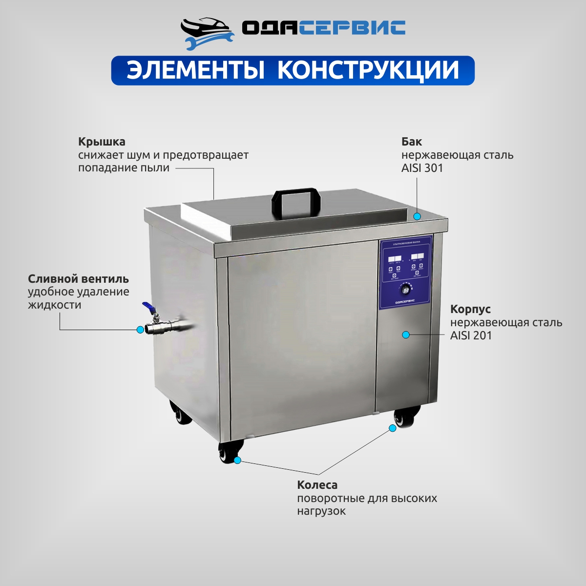 ОДА Сервис ODA-LQ610 — это промышленная ультразвуковая ванна на 61 литров с регулировкой мощности ультразвука, электронным таймером и подогревом. Такие ванны имеют широкий спектр применения, от мойки крупных и не очень деталей в автосервисе, до использования на производстве. Корпус ванны изготовлен из нержавеющей стали AISI 201, а бак ванны изготовлен из AISI 301 нержавеющей стали, что делает его более стойким к коррозии и агрессивным моющим растворам. Рабочая частота ультразвуковой ванны ОДА Сервис ODA-LQ610 составляет 40кГц, что является оптимальным значением для широкого применения. Ванны с такой частотой хороши и для очистки от нагара, масла и т.п. до микросхем, оптики и т.д.