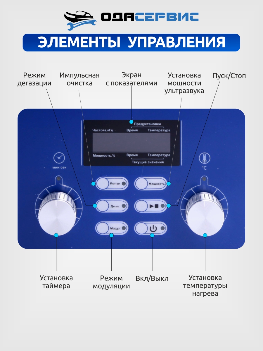 *Обратите внимание: объем ванны указанный в Наименовании, заводом изготовителем, рассчитывается по формуле ДхШхГ, где Д (длина) и Ш (ширина) измеряются по верхней внутренней границе бака, Г ( глубина) максимальное расстояние от верхней кромки бака до его дна. Реальный объем ванны в литрах, отличаться от заявленного, т.к. конструкция бака конусообразная. При выборе ультразвуковой ванны ориентируйтесь на ее рабочий объем.
