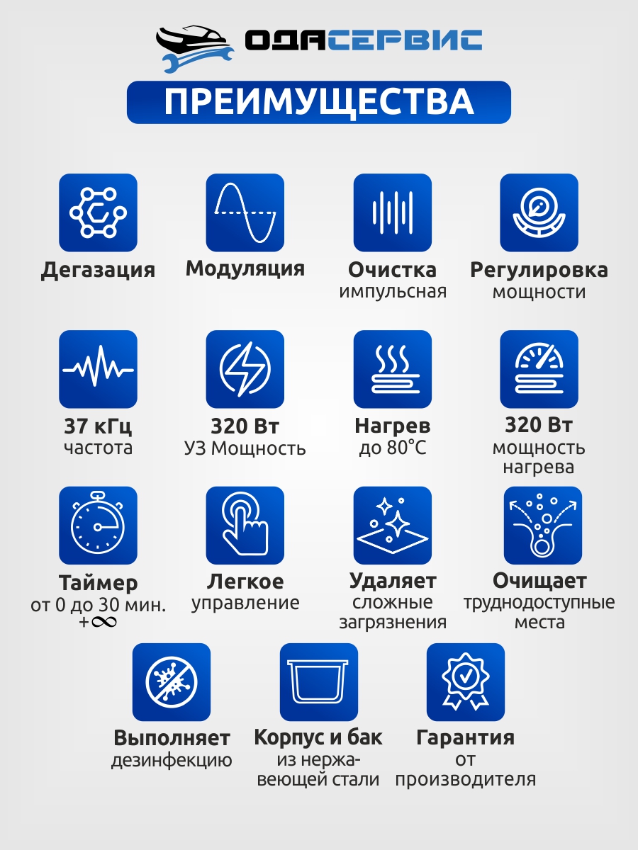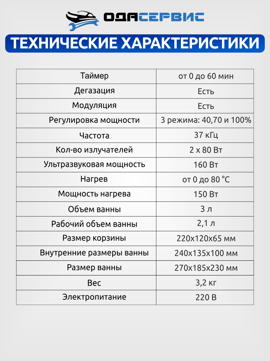 Сравнительные характеристики ультразвуковых ванн Ода Сервис объемом 3 литра