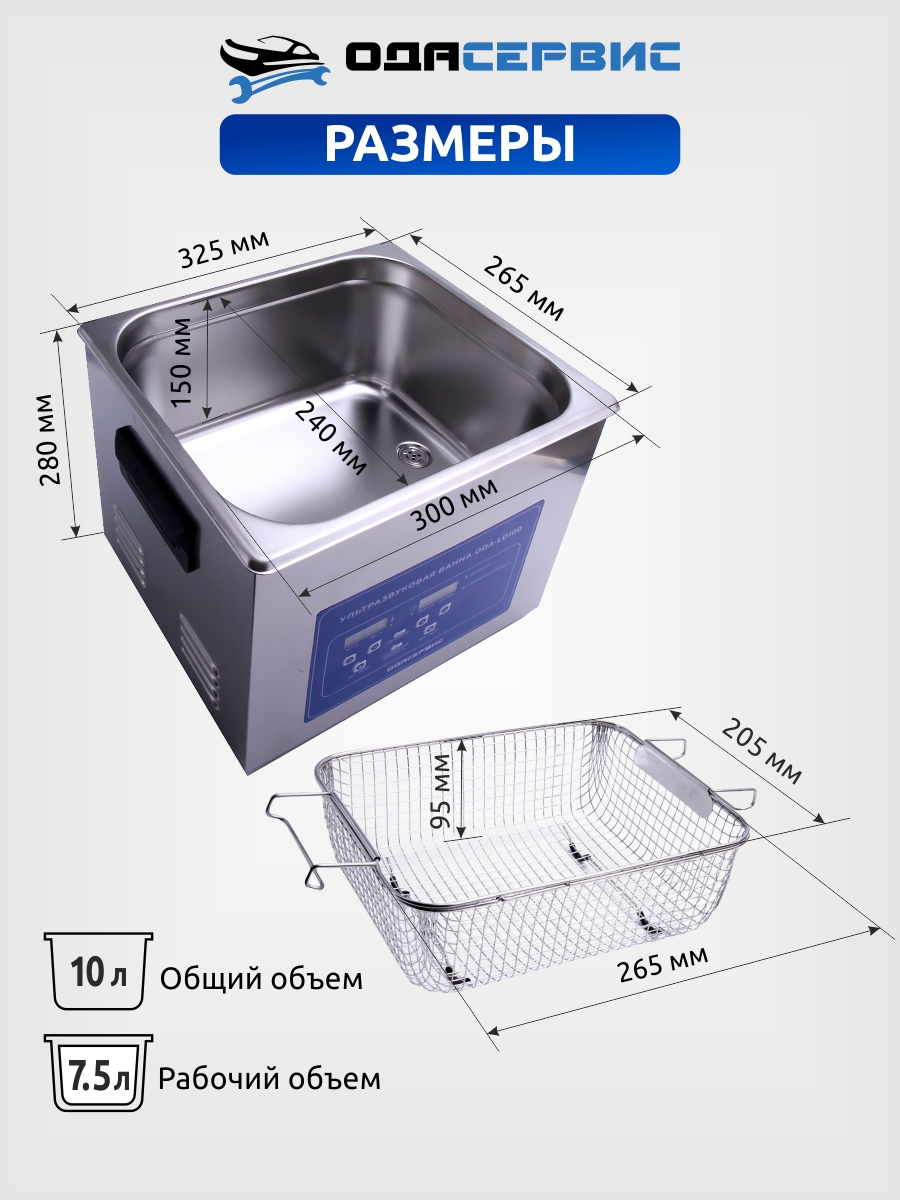 Сравнительные характеристики ультразвуковых ванн Ода Сервис объемом 10 литров